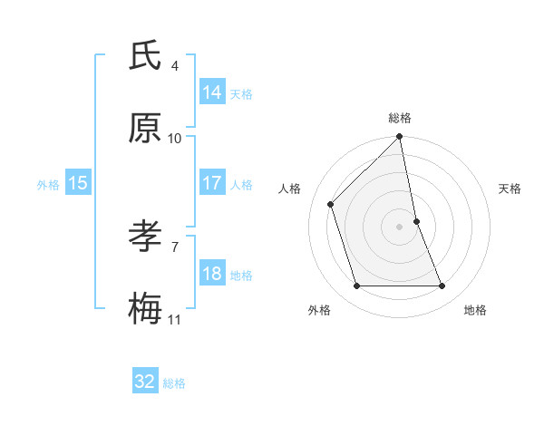 氏原 孝梅さんの総格は32画の5点!