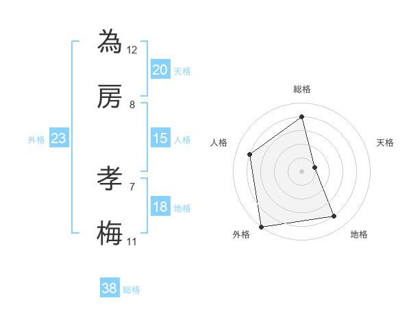 為房 孝梅さんの総格は38画の4点!