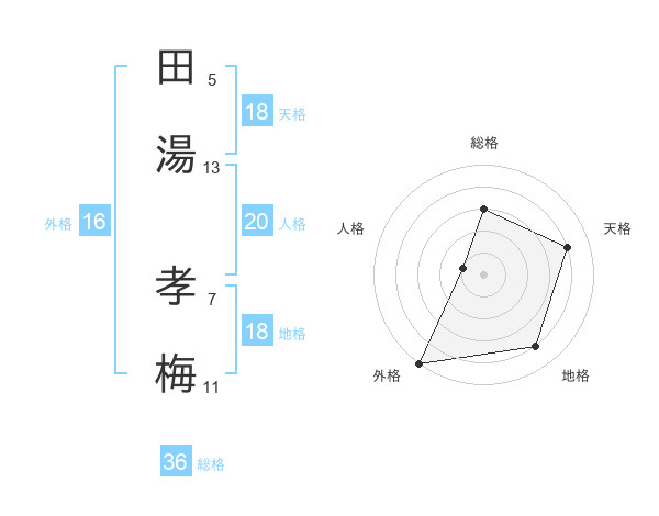 田湯 孝梅さんの総格は36画の3点!