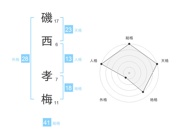 磯西 孝梅さんの総格は41画の5点!