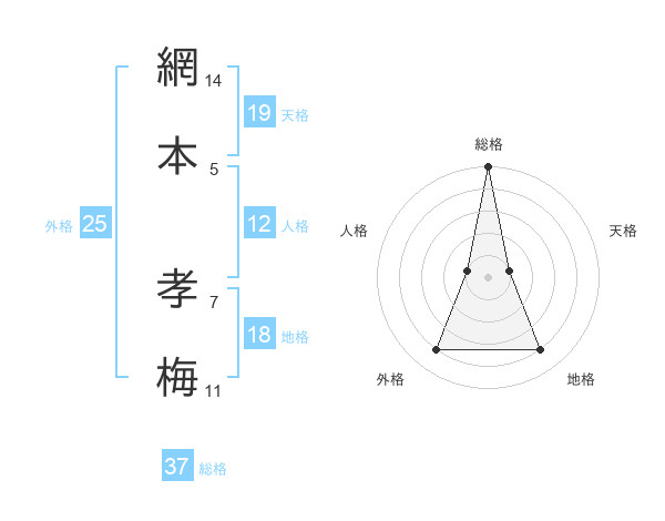 網本 孝梅さんを姓名の画数から五運を鑑定