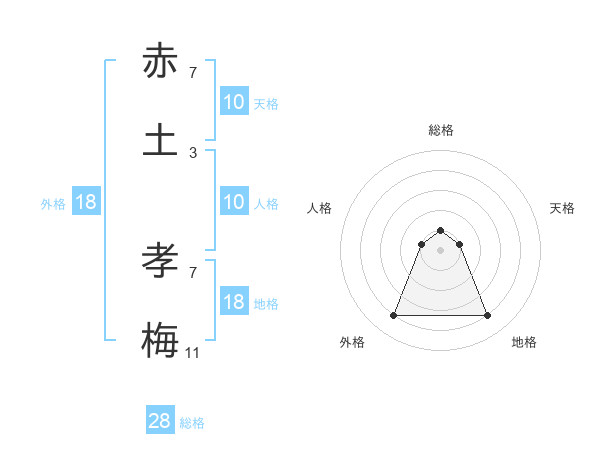 赤土 孝梅さんの地格は18画の4点!