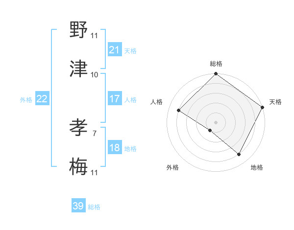野津 孝梅さんを姓名の画数から五運を鑑定