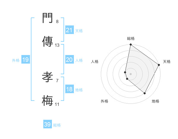 門傳 孝梅さんの天格は21画の5点!