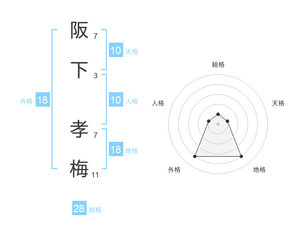 阪下 孝梅さんの総格は28画の1点!