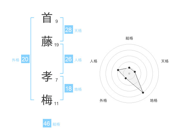 首藤 孝梅さんを姓名の画数から五運を鑑定