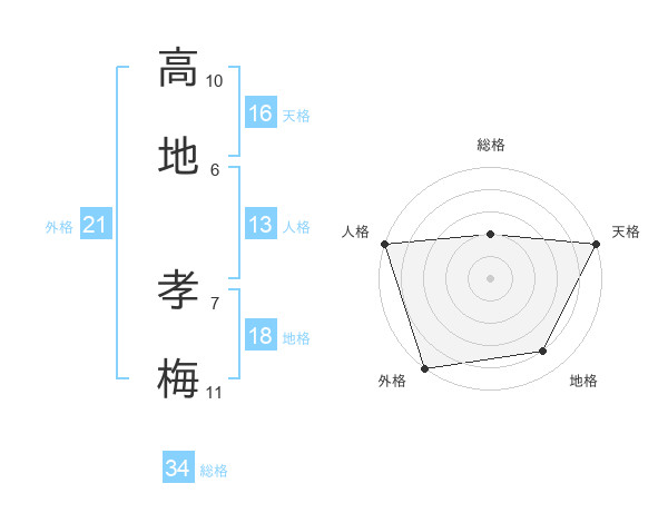 高地 孝梅さんの天格は16画の5点!