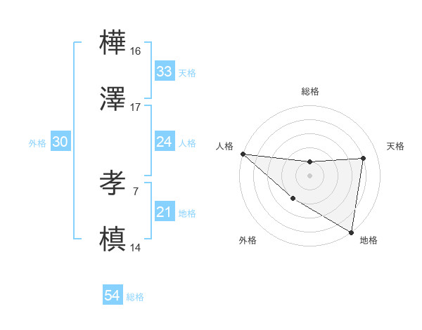樺澤 孝槙さんを姓名の画数から五運を鑑定