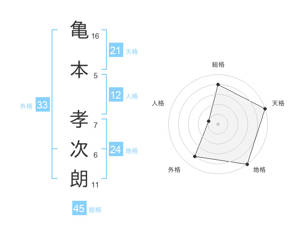 亀本 孝次朗さんを姓名の画数から五運を鑑定