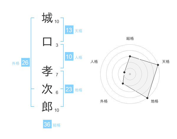 城口 孝次郎さんを姓名の画数から五運を鑑定