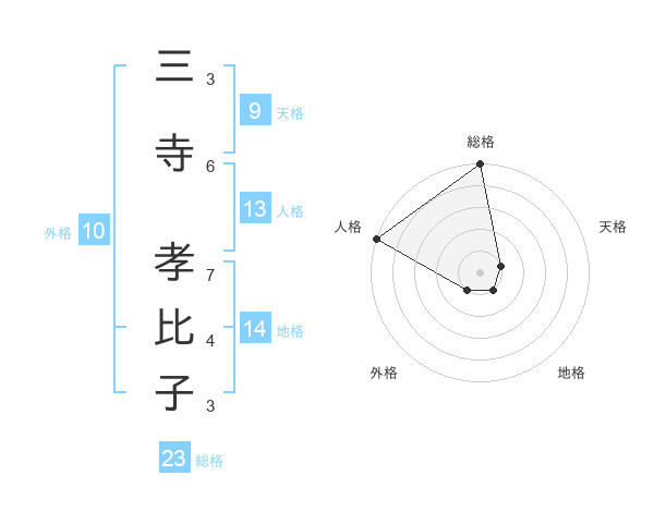 三寺 孝比子さんを姓名の画数から五運を鑑定