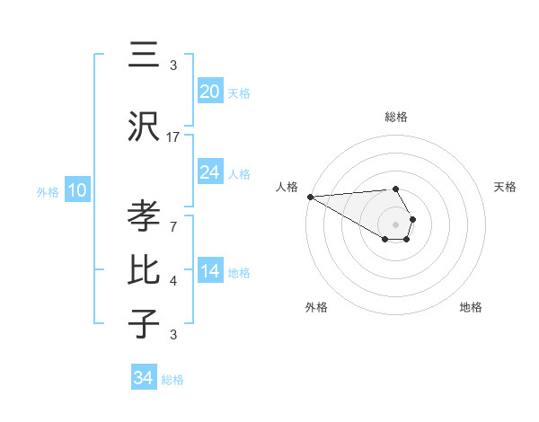 三沢 孝比子さんを姓名の画数から五運を鑑定