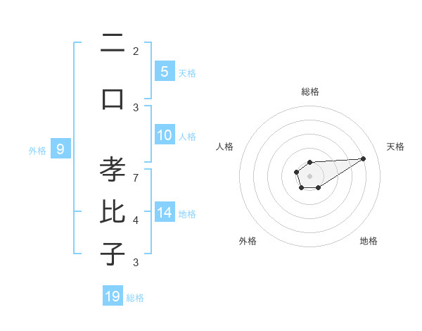 二口 孝比子さんを姓名の画数から五運を鑑定