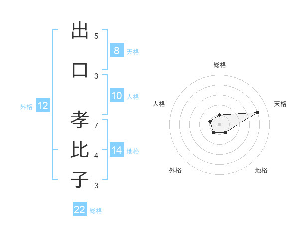 出口 孝比子さんを姓名の画数から五運を鑑定