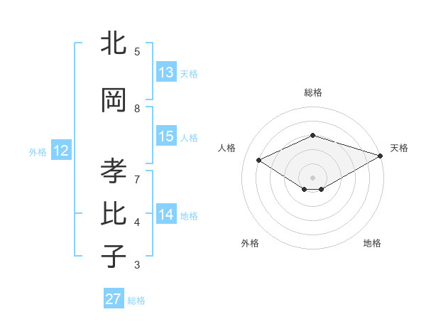 北岡 孝比子さんを姓名の画数から五運を鑑定