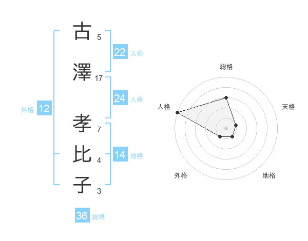 古澤 孝比子さんの天格は22画の1点!