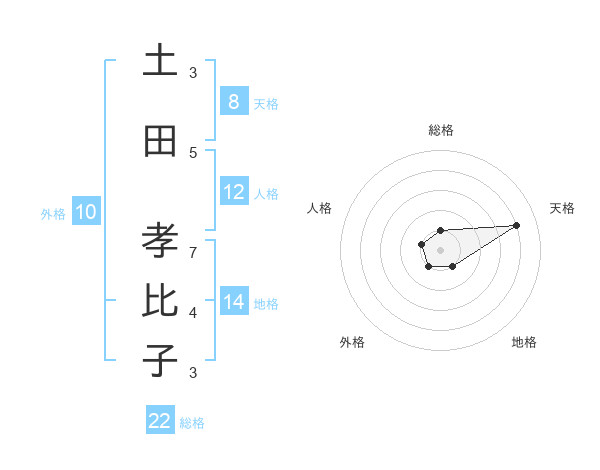 土田 孝比子さんの総格は22画の1点!