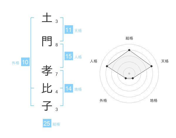 土門 孝比子さんを姓名の画数から五運を鑑定