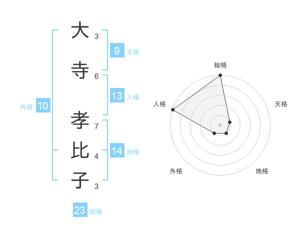 大寺 孝比子さんの総格は23画の5点!