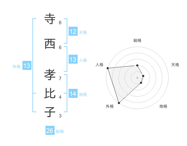 寺西 孝比子さんの総格は26画の2点!