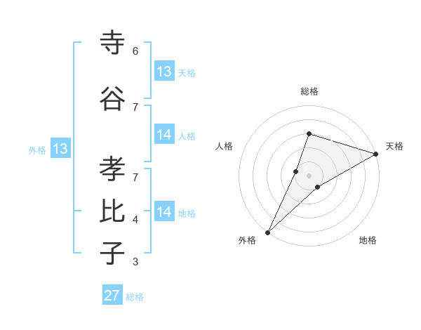 寺谷 孝比子さんの外格は13画の5点!