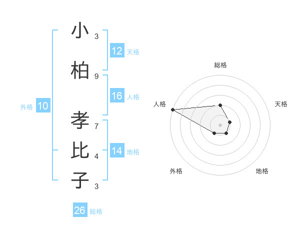 小柏 孝比子さんを姓名の画数から五運を鑑定