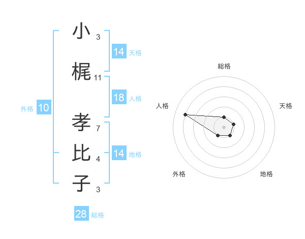 小梶 孝比子さんを姓名の画数から五運を鑑定