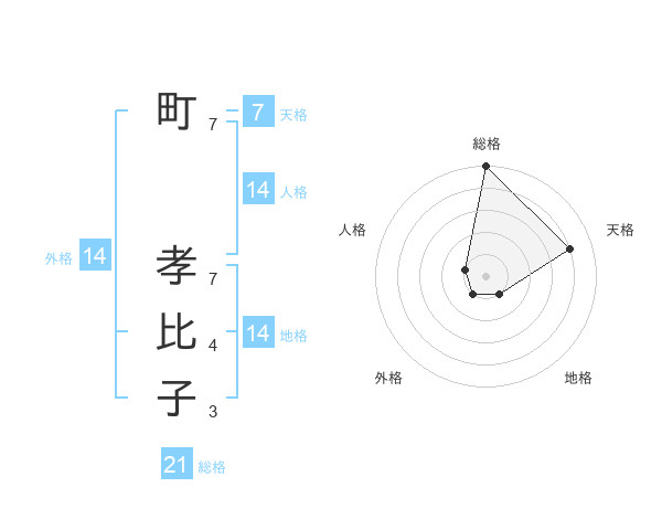 町 孝比子さんの総格は21画の5点!
