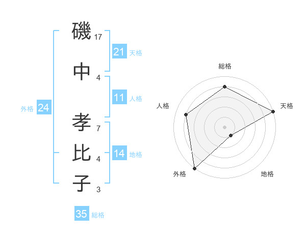 磯中 孝比子さんを姓名の画数から五運を鑑定