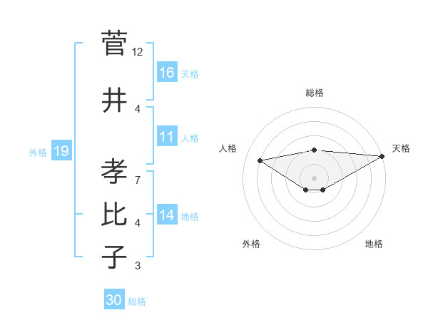 菅井 孝比子さんの総格は30画の2点!