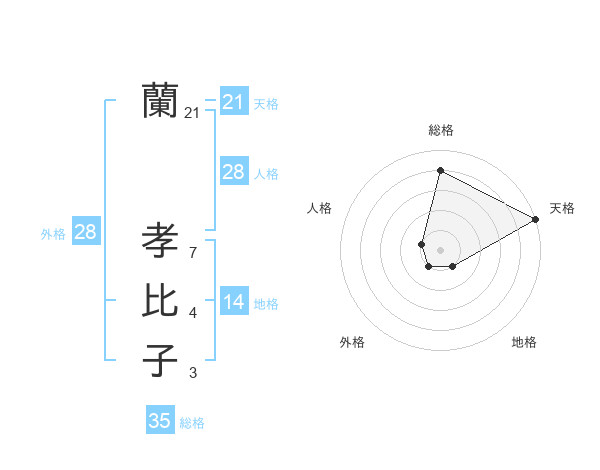 蘭 孝比子さんの総格は35画の4点