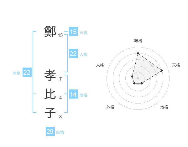 鄭 孝比子さんを姓名の画数から五運を鑑定