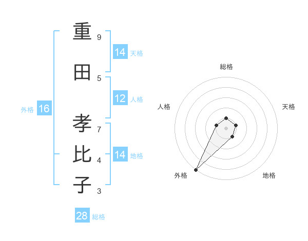 重田 孝比子さんを姓名の画数から五運を鑑定