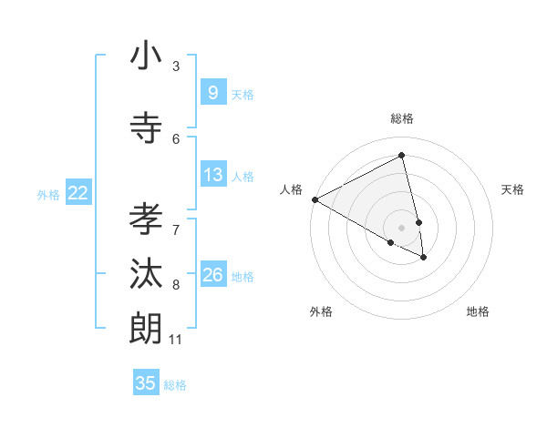小寺 孝汰朗さんを姓名の画数から五運を鑑定