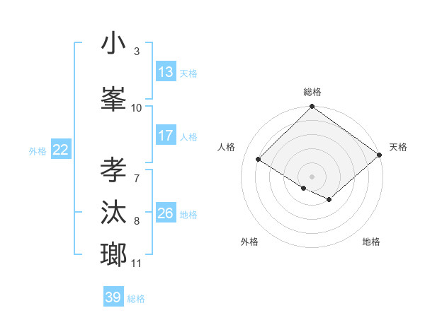小峯 孝汰瑯さんを姓名の画数から五運を鑑定