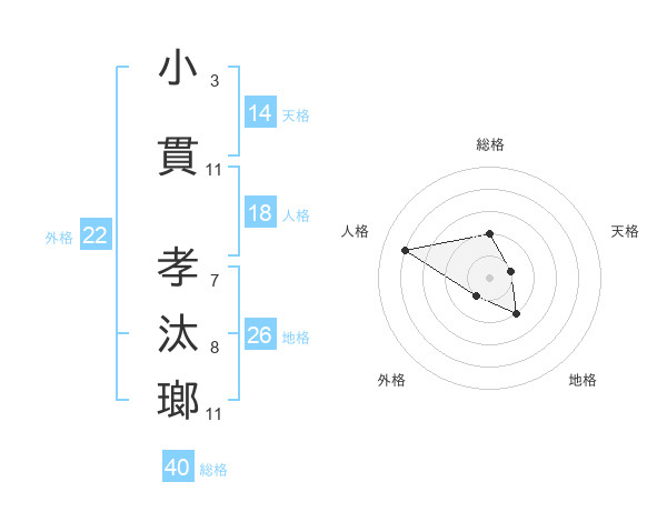 小貫 孝汰瑯さんを姓名の画数から五運を鑑定