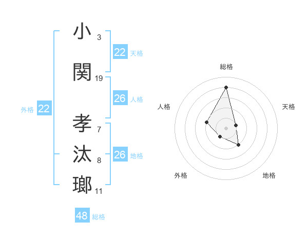 小関 孝汰瑯さんを姓名の画数から五運を鑑定