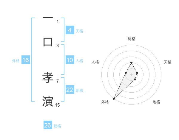 一口 孝演さんの外格は16画の5点!