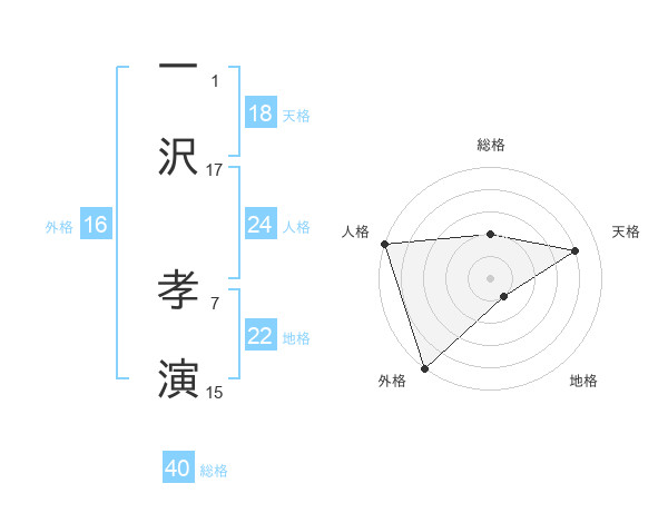一沢 孝演さんを姓名の画数から五運を鑑定