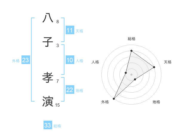 八子 孝演さんの総格は33画の4点!