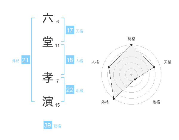 六堂 孝演さんを姓名の画数から五運を鑑定