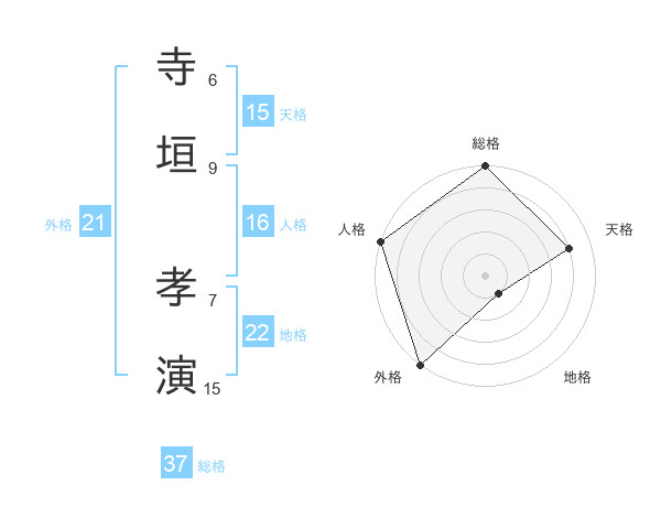 寺垣 孝演さんの総格は37画の5点!