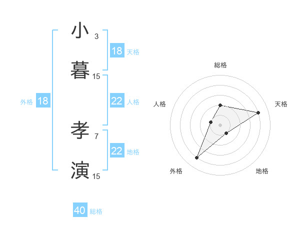 小暮 孝演さんの地格は22画の1点!