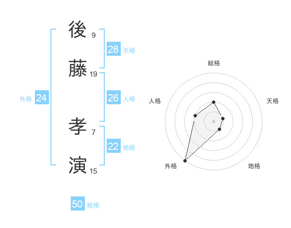 後藤 孝演さんを姓名の画数から五運を鑑定