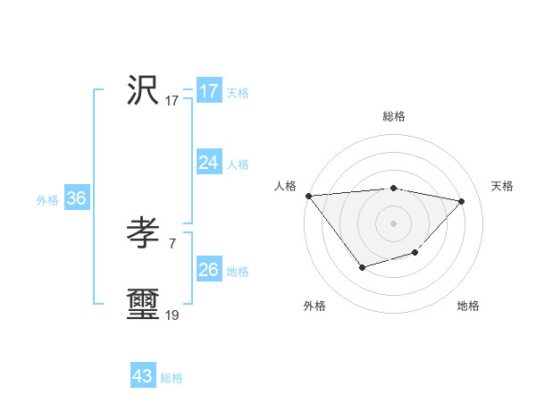 沢 孝璽さんを姓名の画数から五運を鑑定