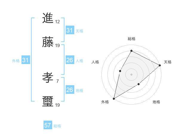 進藤 孝璽さんの総格は57画の4点!