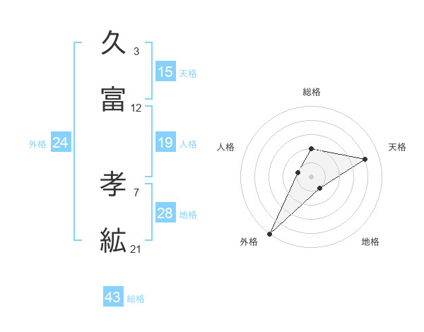 久富 孝絋さんを姓名の画数から五運を鑑定