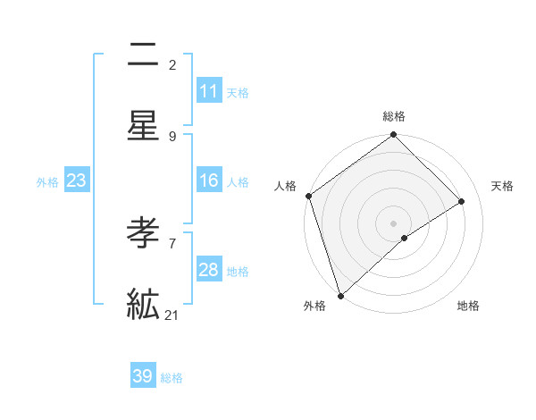二星 孝絋さんを姓名の画数から五運を鑑定