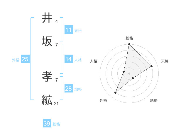 井坂 孝絋さんを姓名の画数から五運を鑑定
