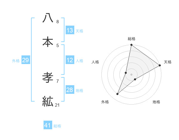 八本 孝絋さんを姓名の画数から五運を鑑定